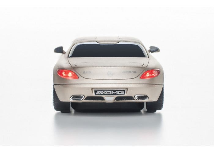 Wireless Nano 2.4 GHz muis. Mercedes Benz SLS AMG Kleur: Matt Pearl Beige. De Click Car Mouse ® voor autoliefhebbers. Nu kunt u de zorgvuldig ontworpen auto met zijn opwindend design en snelheid in uw huis of in uw kantoor met de Click Car Mouse ® etaleren. De Click Car Mouse ® is zo geavanceerd als de originele auto op de straat. Zeer nauwkeurig gemodelleerde auto, met spannende details, zoals voor- en achterlichten. Een buitengewone muis voor uw werk op de computer.
