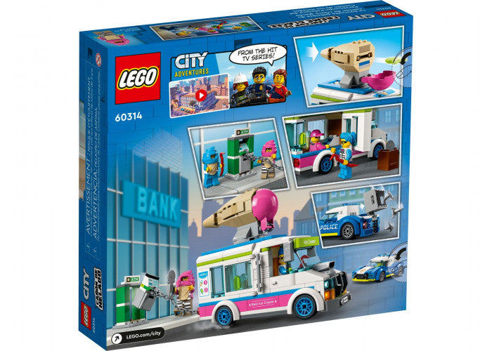 Deze Lego set bevat een politiewagen speciaal voor schurken met een splat launcher, plus een cool onderscheppingsvoertuig en een bandenshredder. Voeg de minifiguren van twee beruchte ijscoschurken en een politieagent toe voor urenlange leuke actie. Dit Lego constructiespeelgoed bevat een stapsgewijze, afgedrukte handleiding en interactieve digitale bouwinstructies. De digitale handleiding is onderdeel van de gratis Legobouwinstructies-app voor smartphones en tablets en bevat intuïtieve zoom- en draaifuncties, zodat kinderen elk model vanuit alle hoeken kunnen visualiseren terwijl ze bouwen. Bevat 317 onderdelen. Geschikt voor kinderen vanaf 5 jaar.