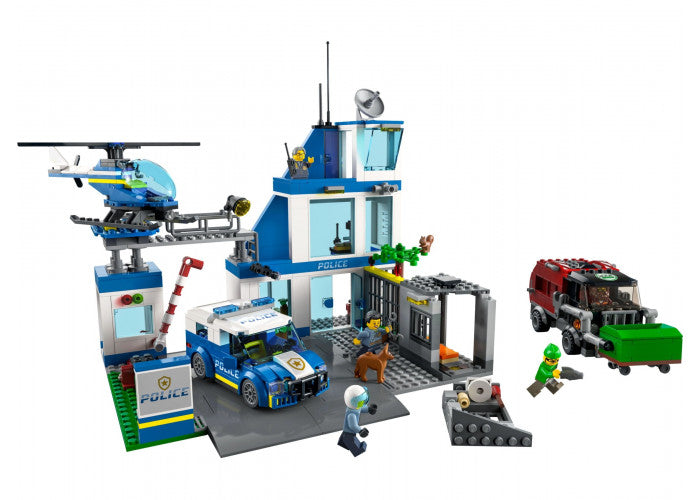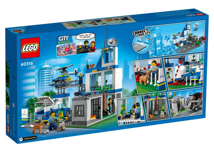 Dit politiebureau met drie verdiepingen zit boordevol inspirerende details, waaronder een gevangenis met ontsnappingsfunctie, binnenplaats voor een boef en een ruimte voor hondentraining. De set bevat ook nog een speelgoedpolitiebusje, helikopter en de vuilniswagen van een schurk, een figuur van een hond plus een wegplaat om andere speelsets te kunnen aankoppelen. Je hoeft enkel nog de vijf minifiguren toe te voegen, waaronder drie personages uit de tv-serie Lego City Adventures, en het speelplezier kan beginnen. Dit Lego constructiespeelgoed bevat een stapsgewijze, afgedrukte handleiding en interactieve digitale bouwinstructies. De digitale handleiding is onderdeel van de gratis Legobouwinstructies-app voor smartphones en tablets en bevat intuïtieve zoom- en draaifuncties, zodat kinderen elk model vanuit alle hoeken kunnen visualiseren terwijl ze bouwen. Bevat 668 onderdelen. Geschikt voor kinderen vanaf 6 jaar.